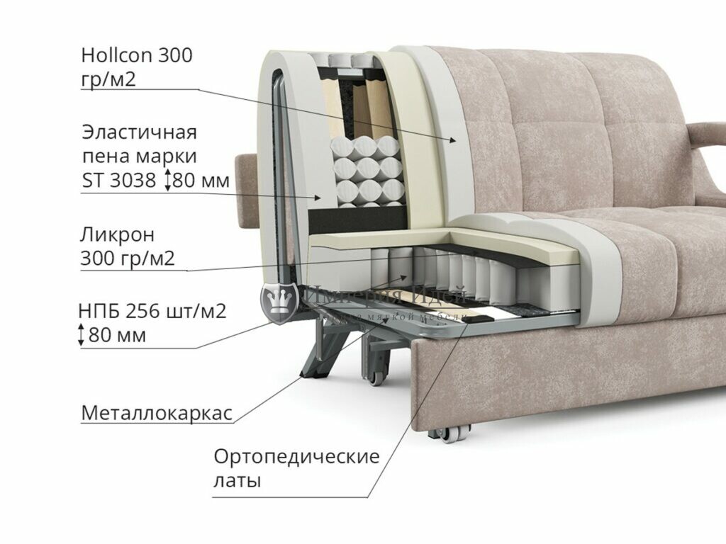 Дизайн дивана «Аккорд 2» можно назвать скромным и лаконичным, изюминку ему придают деревянные подлокотники изогнутой формы. Такое дизайнерское решение подходит для большинства стилей интерьера. Но если стоит задача придать дополнительную оригинальность, можно выбрать яркие цветовые решения обивки. Диван удобен как в сложенном, так и в разложенном положении. Механизм «Аккордеон» обеспечивает идеально ровную поверхность для сна, что гарантирует полноценный отдых. Одна из выдвижных секций оснащена коробом для хранения постельного белья.